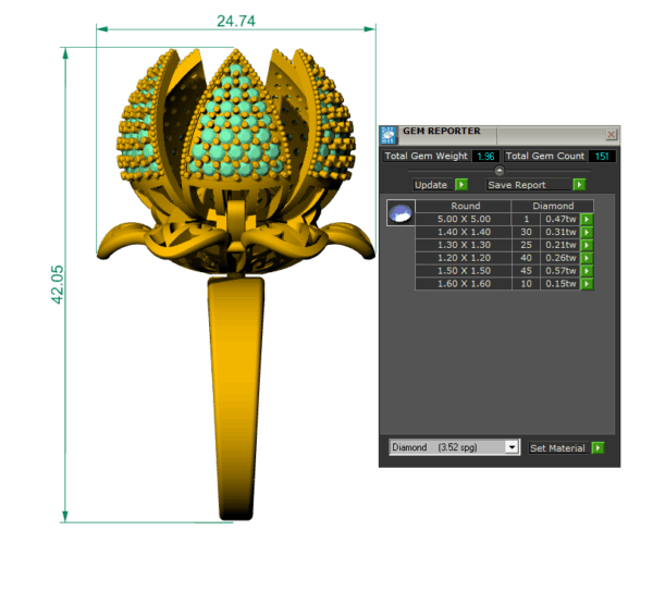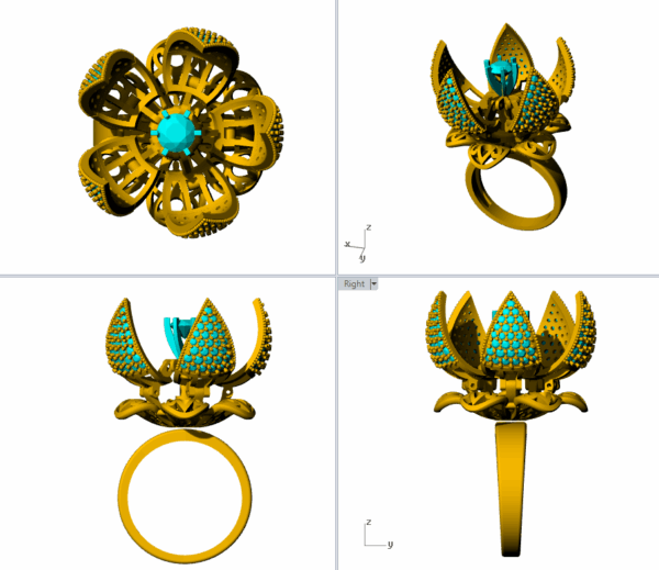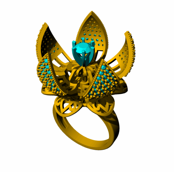Flower Bloom Diamond Ring CAD Design 3D Jewelry Model